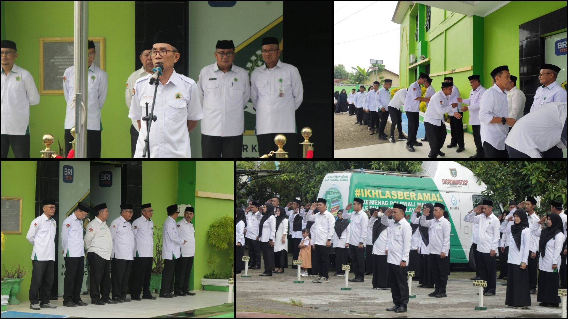 Selanjutnya, Kepala Kantor Kementerian Agama Kabupaten Polewali Mandar, Dr. H. Imran K. Kesa, M.Pd., menyampaikan beberapa hal penting. Pertama, ia menegaskan bahwa Kantor Urusan Agama (KUA) adalah wajah pertama Kementerian Agama dalam memberikan pelayanan prima kepada masyarakat. Menurutnya, fungsi KUA tidak terbatas pada pencatatan pernikahan, tetapi juga meluas pada layanan haji, umrah, zakat, dan wakaf.