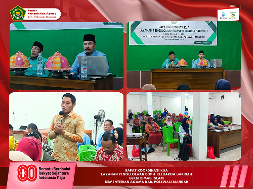 Polewali Mandar (Kemenag Polman News), 21 Agustus 2025 – Seksi Bimbingan Masyarakat (Bimas) Islam Kantor Kementerian Agama Kabupaten Polewali Mandar menggelar Rapat Koordinasi (Rakoor) Layanan Pengelola BOP & Keluarga Sakinah pada Kamis (21/8/2025). Kegiatan ini berlangsung di Aula Kantor Kemenag Polman dan diikuti oleh 41 pengelola BOP serta staf KUA dari 16 kecamatan se-Kabupaten Polewali Mandar.